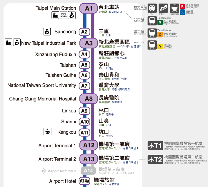 MRTで空港(機場第一)から市内(台北駅)に移動