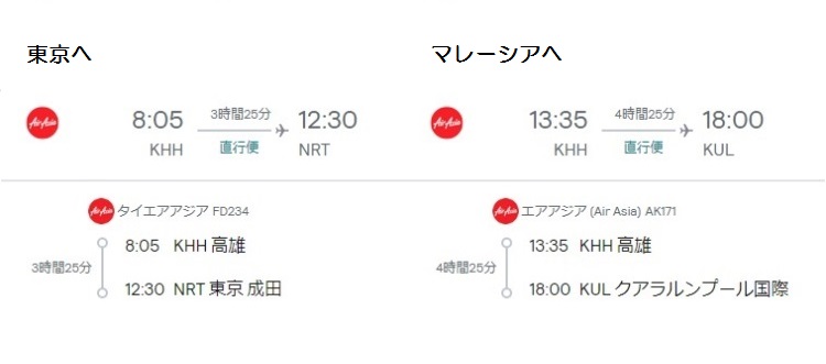 高雄からはスクートはフライトがないのでエアアジアのコスパがいいかと。