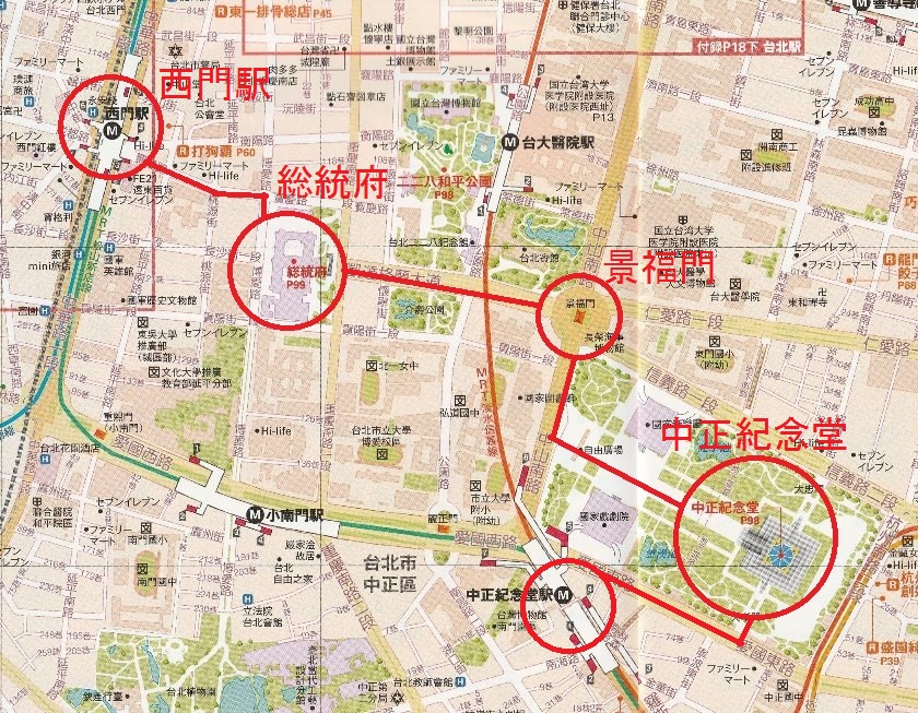 総統府 ⇒ 徒歩10分 ⇒ 国立中正記念堂