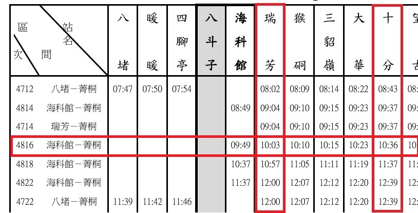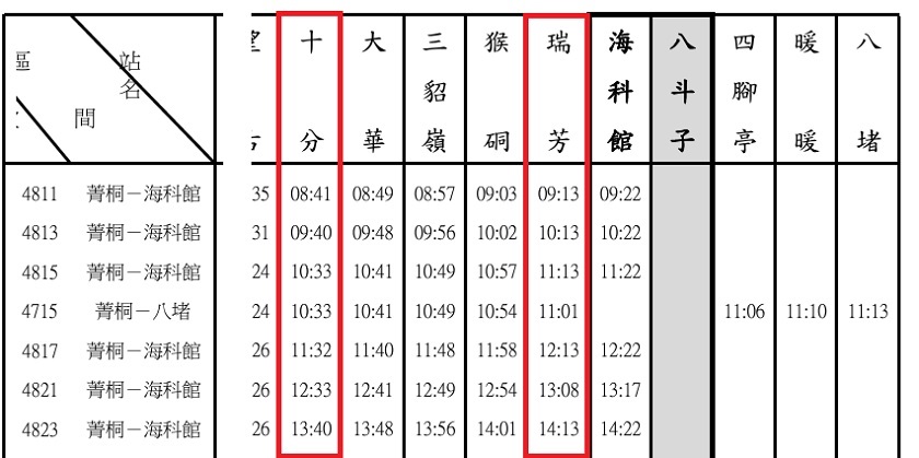 10:03 瑞芳駅 ⇒ 10:36 十分駅