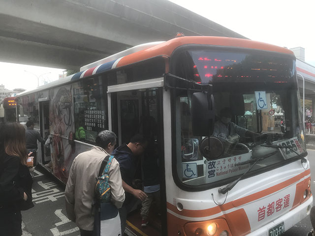 【士林駅R16】に到着後、1番出口を出て、前方に向かって徒歩1~2分で中正路の公共バス乗り場に到着。