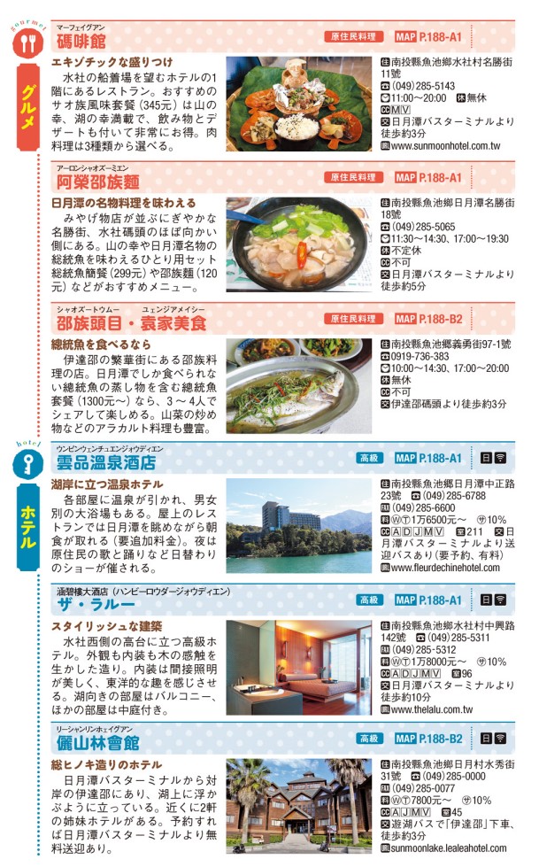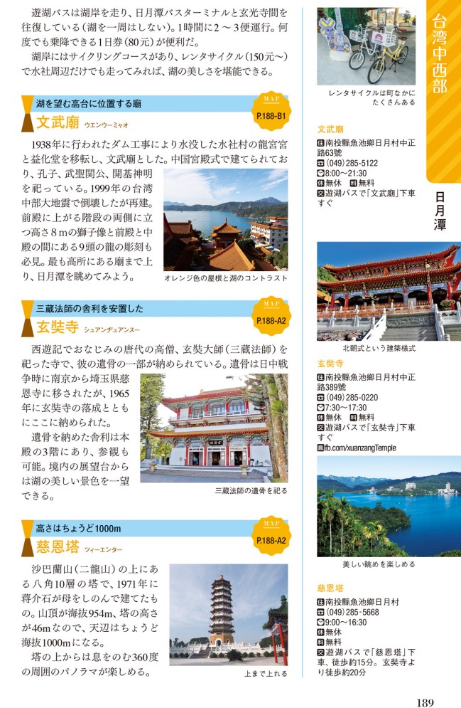 湖の月潭、中湖、頭社にはサイクリングロードも設けられています。湖一周は、全長約33キロ。日月潭到着後すぐ、水社の日月潭旅遊服務中心地下1FのGIANTで、自転車をレンタルし、この環湖公路を自転車で一周する人も増えています。